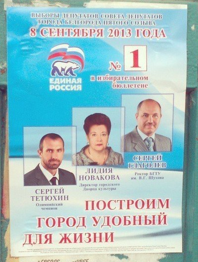 даже при всей любви к волейболу и Тетюхину лично и 25% не пришло на "выборы" в г.Белгороде...Так шо у едросов "победа" то "пиррова", пусть они и прикрывались добрым именем Сергея Юрьевича как щитом...