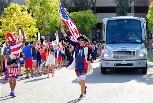 Американские болелы(встречают своих игроков и играют в пляжный волейбол неподалёку от Пирамиды,где встреались сборные США и России)
